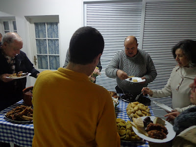 Sabores ancestrais da nossa ilha fizeram parte da ementa do jantar típico da AAIF que reuniu sócios, familiares e amigos à volta da mesa para degustar feijão assado em forno de lenha, torresmos, linguiça, morcela, inhame, batata doce (cozida e assada em forno de lenha), milho frito (ou papa grossa de milho), bolo do tijolo, escaldada de batata doce, pão de trigo e de milho. E em tempo pascal também não ficaram esquecidas umas amêndoas para adoçar a boca aos mais gulosos.